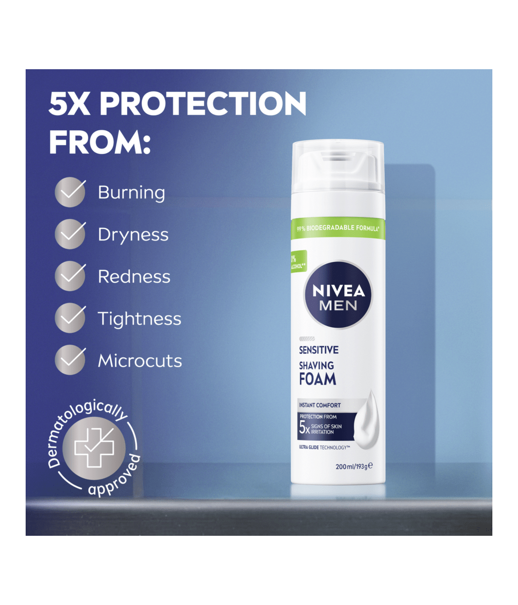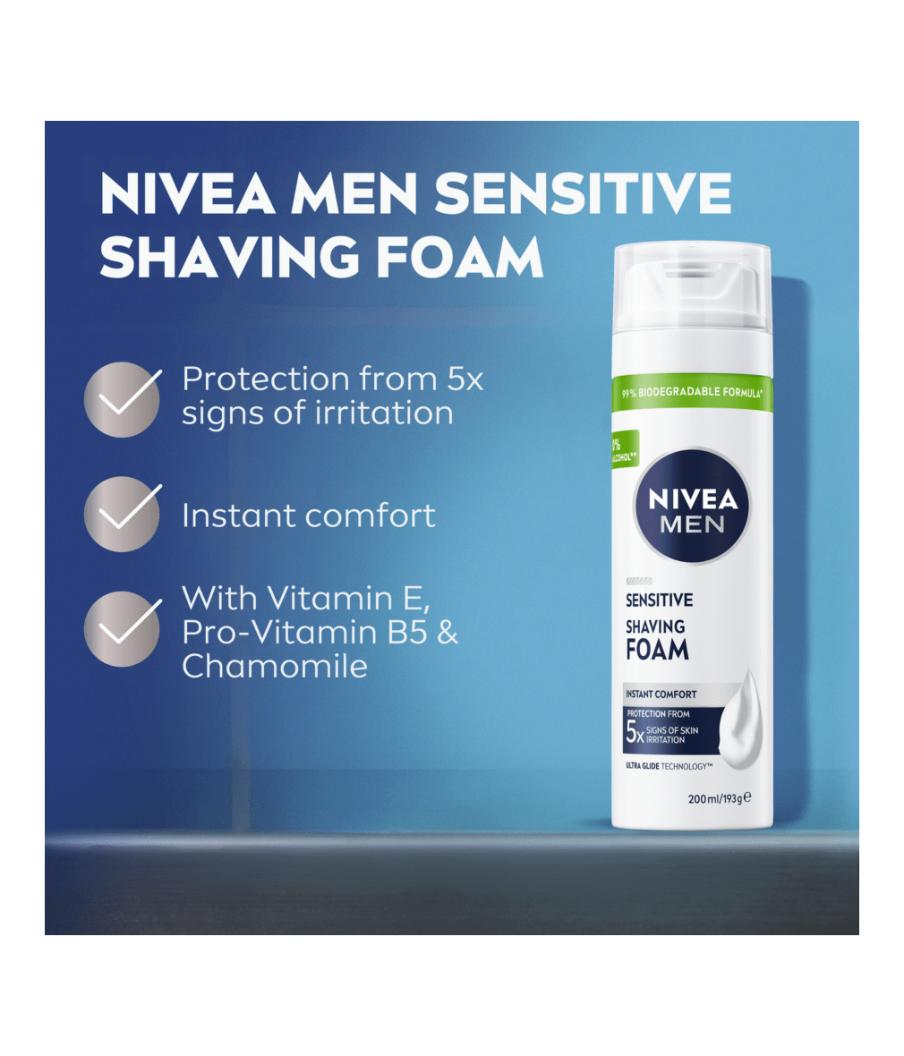 This shaving foam has been designed with your sensitive skin in mind. The product softens your beard hair with Ultra Glide Technology – for a close and ultimately smooth shave without skin irritations like burning.