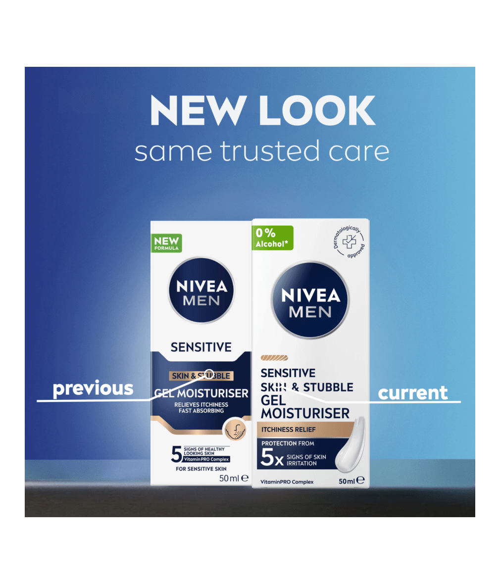 NIVEA MEN SENSITIVE Skin & Stubble Gel Moisturiser - Get fast-absorbing, non-greasy 48-hour hydration and instant relief for sensitive skin! Try NIVEA Men Sensitive Skin & Stubble Gel today.