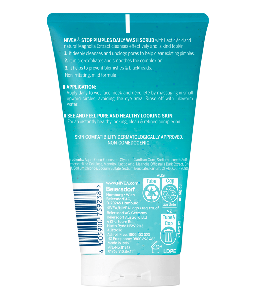 Stop Pimples Daily Wash Scrub cleanses pore-deeply and helps to open clogged pores. Its anti-bacterial formula with natural Magnolia Extract and Lactic Acid smoothens and refines your skin complexion. With its mild formula, it does not irritate your skin. For fresh and clear looking skin.